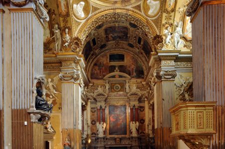 Il restauro, inoltre, ha riportato alla luce affreschi trecenteschi e quattrocenteschi. Dietro un altare barocco è stato ritrovato un bellissimo affresco suddiviso in quadri di chiaro intento didascalico per insegnare ai fedeli gli episodi della Bibbia attraverso un metodo “a immagini” che ricorda gli attuali disegni a fumetti. Nell’affresco, che narra episodi della vita di San Giovanni Battista, c’è la mano di un grande maestro che con una eleganza ed una espressività uniche coniuga l’efficacia rappresentativa del Medioevo con la bellezza dei canoni stilistici del Rinascimento. Non a caso è stato fatto il nome dell’eugubino Ottaviano Nelli, pittore tardogotico attivo in Umbria e nelle Marche.