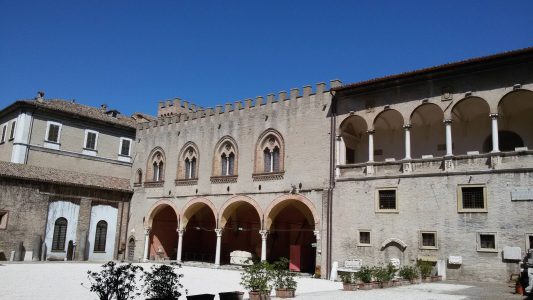 Le raccolte civiche di Fano sono conservate all’interno del monumentale Palazzo Malatestiano, voluto da Pandolfo III Malatesti, ed edificato nella prima metà del Quattrocento. Si accede alla struttura da Piazza XX Settembre, attraversando l’antico Arco Borgia-Cybo ed oltrepassando l’androne. Prima di proseguire lungo lo scalone, l’occhio è rapito dalla bellezza della prospiciente Corte Malatestiana.